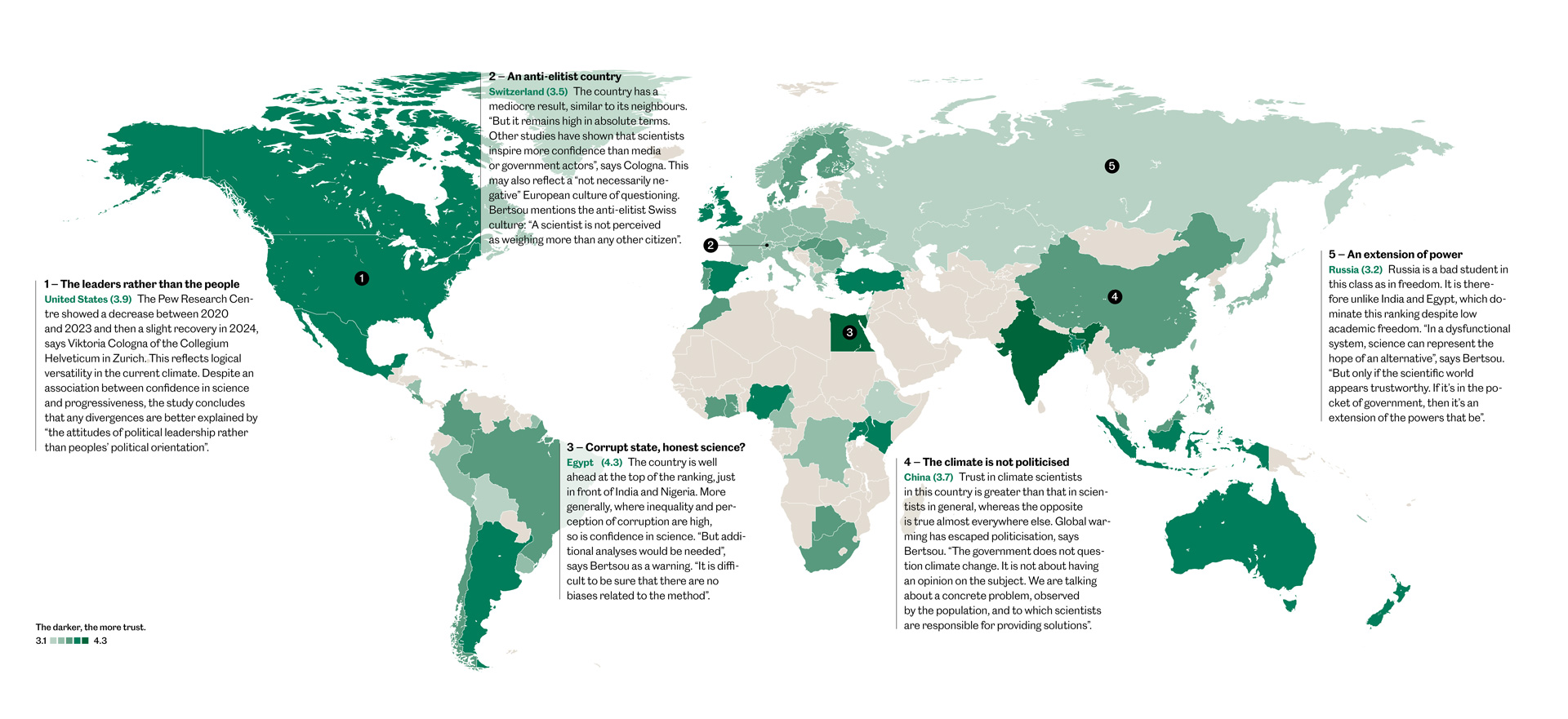 - Six case studies on five continents reveal how we can foster trust in science. | Source: the project ‘Trust in scientists and science-related populism’, V. Cologna et al.: ‘Trust in scientists and their role in society across 68 countries’. Nature Human Behaviour (2025)
