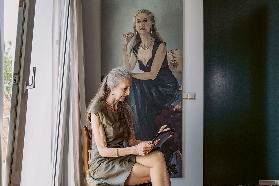Working from home on her tablet in her own four walls. At 69, this resident of Amsterdam is still fully engaged in the working world of today. | Photo: Jagoda Lasota for 1in6by2030