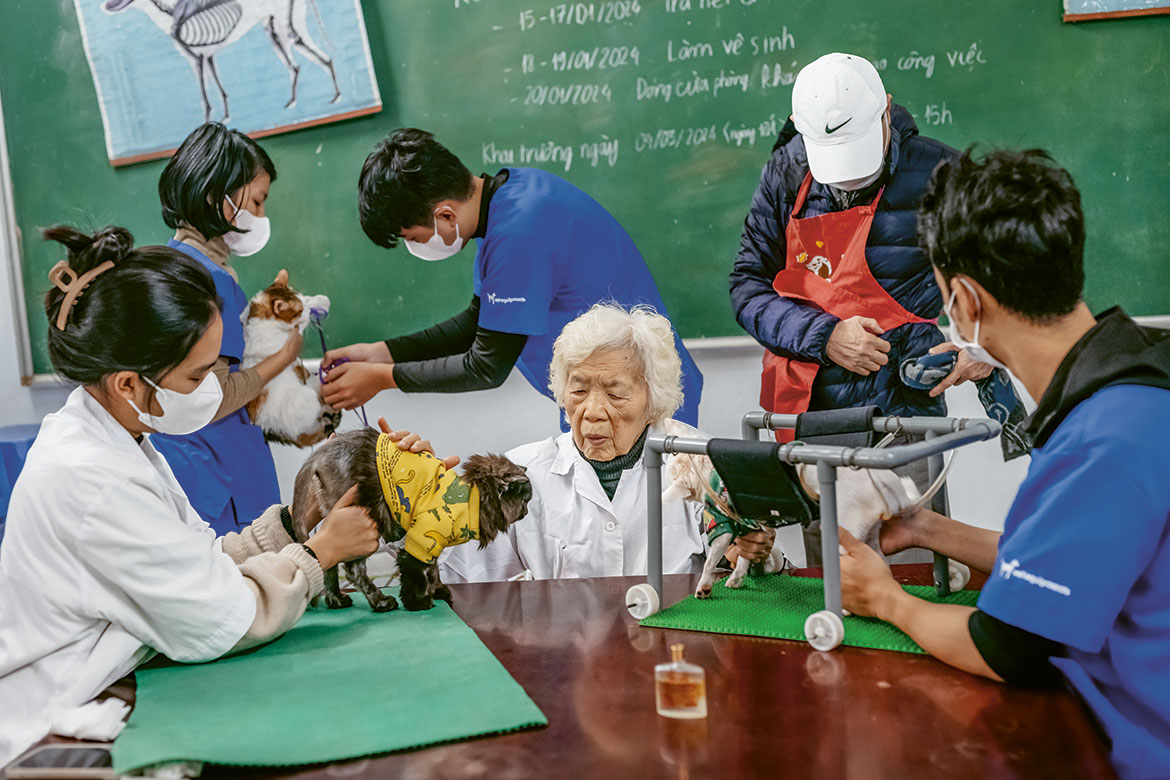 Passing on knowledge right to the very end. At 91, this lady in Hanoi is still training volunteers in traditional animal acupuncture at her free pet clinic. | Photo: Lê Xuân Phong for 1in6by2030