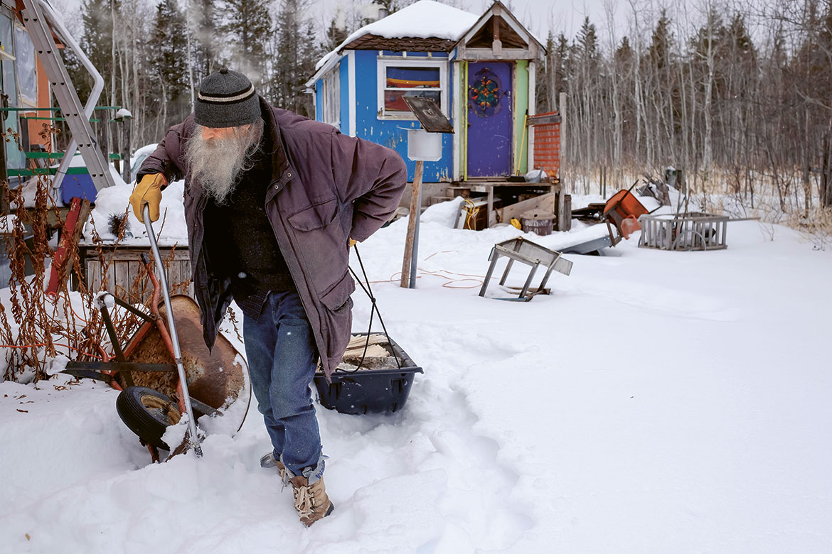 Retiring isn’t an option for this 72-year-old potter who lives a secluded life in Manitoba in Canada. He fires his ceramics in a wood-fired kiln. Only his potter’s wheel needs a small generator. | Photo: Phil Hossack for 1in6by2030
