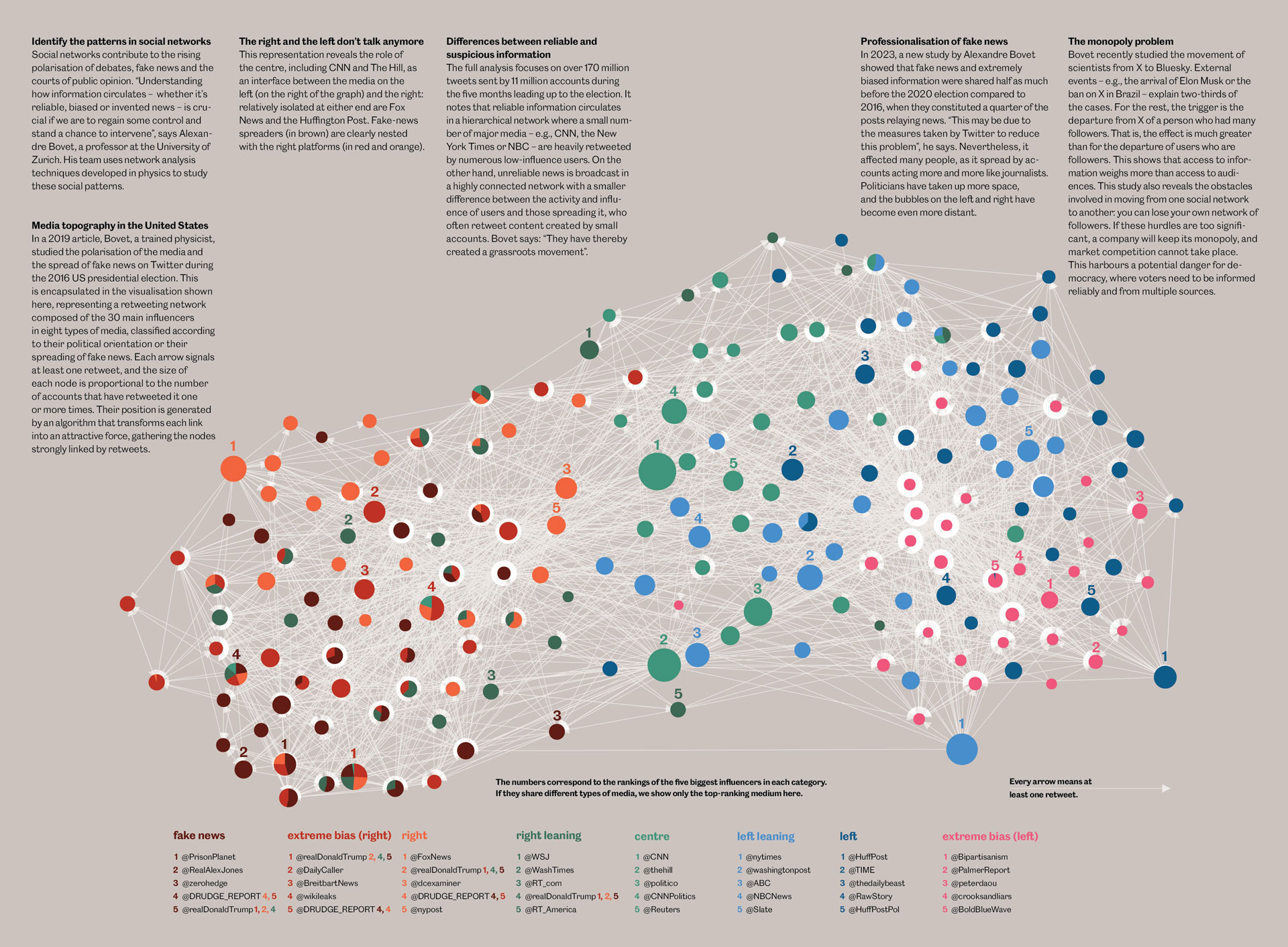 Fake news doesn’t spread in the same way as reliable information. This has been demonstrated by the work of Alexandre Bovet. Evaluating the impact of social networks and keeping them under control requires a better understanding of their dynamics.